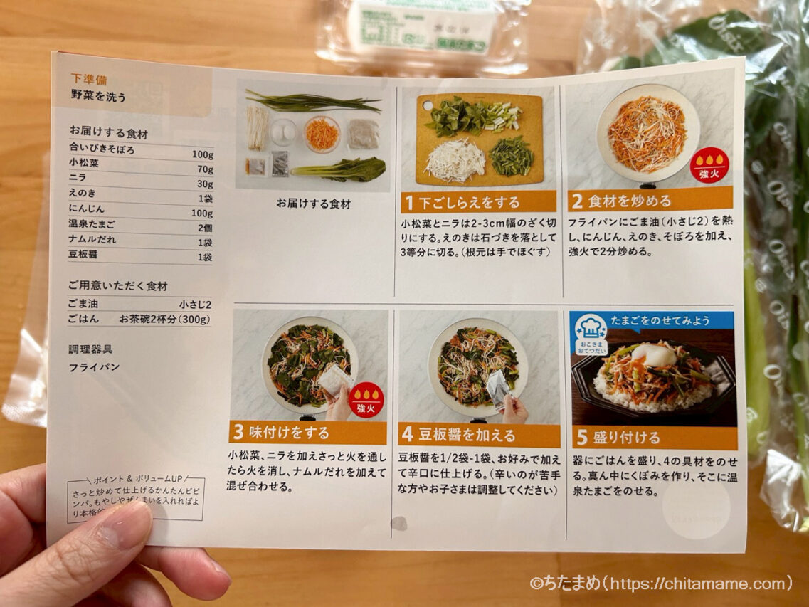 我が家(大人2+子ども1)でも、ビビンバは十分でしたが、レモンペッパーチキンは少なめに感じました。なので、納豆・汁物・副菜を足して「夕飯として成立させる」使い方が現実的です。