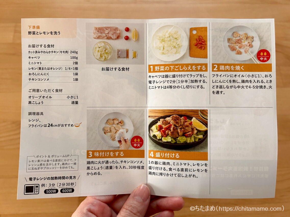 我が家は薄味寄りですが、ビビンバはちょうどよく、レモンペッパーチキンは濃いめに感じました。薄味派の方は、濃さが気になりやすいメニューの日は、副菜や汁物を薄めにしてバランスを取るのがおすすめです。
