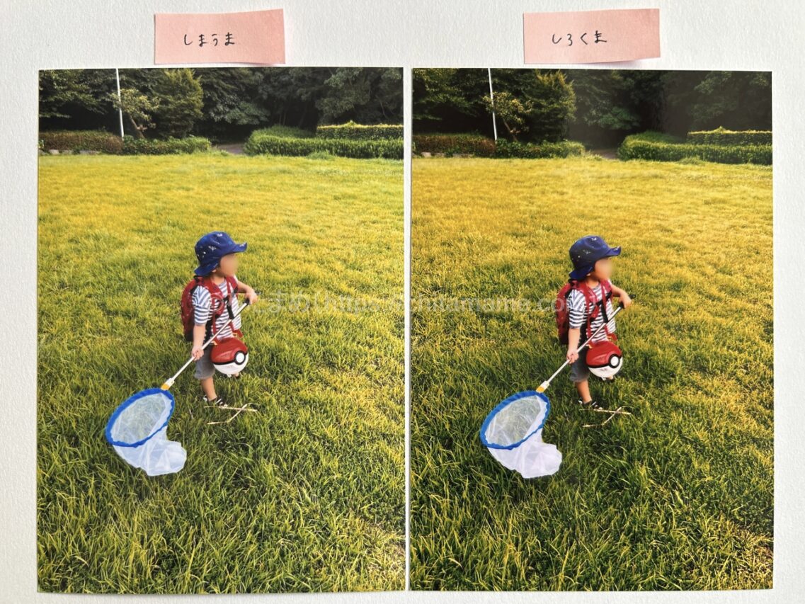 私も「王道のしまうまプリントにしようかな」と思っていたのですが、しろくまフォトの価格も気になり、実際に同じ写真で比較してみました。